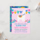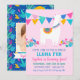 Convide os convidados para uma divertida celebração com lamas com este convite de aniversário colorido e floral para meninas. Uma lama alegre vestindo uma faixa de bandeirolas coloridas se destaca entre flores do deserto em um fundo rosa brilhante, com letras ousadas em fúcsia e azul "Lama Diversão". O verso apresenta um padrão divertido de plantas de cactos com um espaço para foto e um balão para um design divertido de dois lados. Todo o texto é totalmente personalizável para se adequar à sua celebração.