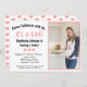 Celebre uma chá de fraldas com um simples, moderno e divertido branco "É uma garota" com um design chá de fraldas de corações rosa. Clique em Personalizar para alterar a foto do convidado de honra e o texto para as informações do evento. Corações cor-de-rosa felicitam esta design na parte de trás da carta.