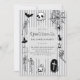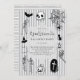 Convide seus amigos para uma festa de Dia das Bruxas fanática com este adorável convite! Esta design mostra um charmoso gato preto a espreitar por detrás de um túmulo assustador adormecido com um sotaque floral sutil, todos colocados contra um pano de fundo branco de listras negras finas. É a maneira perfeita de anunciar sua festa de Halloween e colocar todos no espírito por uma noite de fantasias, doces, e diversão estranha. Este convite foi feito para capturar a essência divertida e um pouco misteriosa do Dia das Bruxas, garantindo que seus convidados estejam animados para as festividades que se avizinham. Adicione um toque de brincadeira aos seus planos de Halloween com este cartão delicioso.