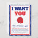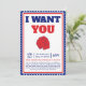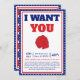 Celebre o Dia da Independência com estilo com o nosso "Eu Quero que Você Venha à Minha Festa Convite"! Este convite patriótico captura o espírito do 4 de julho com seu vibrante design vermelho, branco e azul. Perfeito para a sua festa de 4 de julho, este cartão inspirado no vintage define o tom para uma celebração cheia de diversão. Com o icônico motivo "Eu Quero que Você", ele convida seus convidados a se juntarem às festividades.