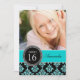 Menina, divertida, bonita, mas sofisticada e elegante, este Convite de festas branco e azul-branco personalizado do Glitter Damask Sweet Sixte com sua foto é a forma perfeita de convidar seus convidados para a doce festa de dezesseis filhos.Nota: brilho é um efeito fotográfico IMPRESSO. Design de Elke Clarke©.