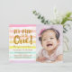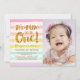 Que graça é ser um! Celebre o primeiro aniversario do arco-íris feminino com listras pastel e o coração de confete de ouro no primeiro aniversário. Carregue sua própria foto personalizada.