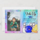 "Divirtam-se", convite de festa azul com espaço para adicionar a foto personalizada da criança. Este convite é definido em um fundo impressionante tingido de azul, usando cores vibrantes e modernas. Personagens de desenho animado divertidos!