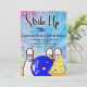 Diversão "Divirtam-se", Tema de Cor Azul, Convite de Festa de Meninos. Este convite é definido sobre um impressionante fundo tie dye (azul). Ele usa um tema retrô vibrante e colorido com esquema de cores da moda. Personagens de boliche de desenho kawaii acentuam a diversão!