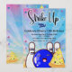 Diversão "Divirtam-se", Tema de Cor Azul, Convite de Festa para Rapazes. Este convite é apresentado sobre um impressionante fundo azul com efeito tie dye. Ele usa um tema retrô vibrante e colorido com uma paleta de cores da moda. Personagens de desenho animado kawaii de boliche acentuam a diversão!