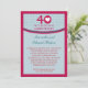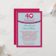Convite moderno e atraente para aniversário de casamento. Ótimo para celebrar os 40 anos de casamento com estilo. Apresenta um grande número 40 em cor Rubi com um coração dentro do zero e um padrão com corações pequenos ao fundo. Rubi é a cor tradicional para este aniversário. Convite perfeito para celebrar este aniversário marcante em casa, num restaurante ou num local favorito. Design clássico e atemporal. Adicione a sua própria mensagem.