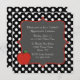Convite da ocasião do professor do divertimento, feito em uma forma quadrada com um fundo preto e branco das bolinhas. Os gráficos de uma área de texto cinzenta moldada decorativa das bolinhas vermelhas e brancas, no meio, têm uma única maçã vermelha, à esquerda o canto de inferior esquerdo. A parte traseira é feita no mesmo teste padrão de bolinhas preto e branco. Personalize todo o texto para seu evento. O grande convite todos amará.