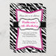 Convite do aniversário da criança da zebra do rosa