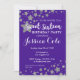Convide seus convidados ao doce 16 com este convite fabuloso do aniversário! Caracterizando um fundo roxo brilhante e acentuado com as estrelas de prata glittery-glam de um brilho. Personalize para caber sua necessidade.