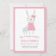 Convite bonito do aniversário da menina do coelho de coelho para o seu pequeno sua festa de aniversário que caracteriza mão adorável uma menina de coelho tirada.
