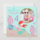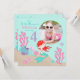 Cartão do convite do aniversário da sereia pequena doce o quarto com criaturas subaquáticas e uma foto introduzem o modelo.