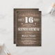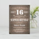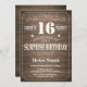 Convite do aniversário da surpresa rústica 16o com fundo de madeira rústico. Vintage retro. Aniversário adulto. Aniversário masculino dos homens ou das mulheres. Miúdos menino ou senhora Adolescente Adolescente Bday Convite da menina. 13o 15o 16o 18o 20o 2ø 30o 40th 50th 60th 90 100th do 80 do 70. Alguma idade. Para uma personalização mais adicional, clique por favor "personalizam-no" botão e usam-nos nossa ferramenta de design para alterar este modelo.