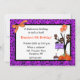Um convite do aniversário do Dia das Bruxas com as corujas na árvore com abóboras, cupcake do aniversário, balões e beira roxa das bolinhas com arco. Aperfeiçoe para meninas e meninos de todas as idades. Apenas personalize o texto com seus detalhes do partido.