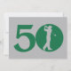 Você pode personalizar todo o texto neste convite de aniversário temático do 50th golfe. Você pode mudar o texto e o número na parte dianteira e usar isto para um 40th, o 60th, o 70 ou o outro aniversário. As características de design uma silhueta de um jogador de golfe que balança um clube feito para olhar como o zero em 50 na parte dianteira. Verde e cinza.
