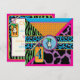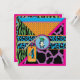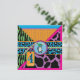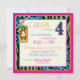 Os impressões do safari, girafa, zebra, e chita e um teste padrão de bolinhas, com o macaco que pendura em uma videira e em Tag do olhar 3D, arcos, aparam o quarto cartão do convite do aniversário.