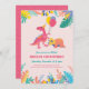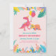 Convite bonito, corajoso e do divertimento do dinossauro do aniversário com cores cor-de-rosa para a menina loving do dinossauro final!