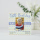 Fundo floral pastel colorido neste convite de aniversário quadrado doce. Uma área de imagem, no meio, porque a foto da criança do aniversário e um trem bonito dos desenhos animados decoram a parte inferior do quadro da foto. Todo o texto é customizável serir suas necessidades do partido. Aperfeiçoe para o primeiro aniversário de um bebê.