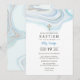 Um redemoinho de mármore em azuis delicados cria um belo design. Adornado com uma cruz.