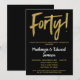 Um convite de festa de aniversário de casamento de 40 anos preto e dourado, elegante, simples mas impressionante. Texto com letra cursiva glamorosa no topo e texto dourado abaixo com o nome em branco destacado