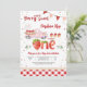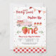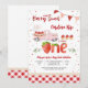 Celebre o primeiro aniversário dos seus pequenos com este encantador convite "Berry Sweet" que apresenta um caminhão rosa vintage transbordando de morangos, balões e cupcakes. Fontes divertidas e detalhes caprichosos, como bandeiras e enfeites florais, criam uma atmosfera alegre e de conto de fadas perfeita para festas de verão. Este design temático de morango é ideal para celebrações de marcos importantes, misturando doçura e nostalgia para deliciar os convidados e definir o tom para um dia cheio de diversão.