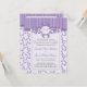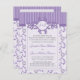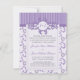 Um convite delicado e bonito da recepção de casamento da noite nas máscaras do roxo pálido e do lilac da lavanda. Um teste padrão decorativo, moderno do estilo do damasco feito dos redemoinhos e dos pontos, e um painel da listra à parte superior ajustaram o fundo deste atrativo convidam. Um quadro do falso do estilo do rolo destaca monogramas dos noivos enquanto uma camada trocista do cartão destaca o fraseio. O texto adicional pode ser adicionado ao reverso deste design atrativo. Uma seleção das cores e os produtos de harmonização estão disponíveis na loja.