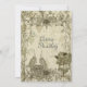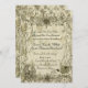 Convite encantador do casamento em um design do vintage que caracteriza o ouro e a imagem de fundo verde de videiras do vintage e de vigas desvanecidas--e unicórnios! Ilustração italiana do vintage da árvore do myrtle. Mostrado no papel metálico do gelo para dar-lhe um brilho extravagante agradável.