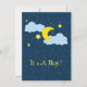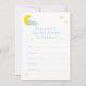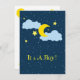 Convite do chá de fraldas para o menino com lua e estrelas, azul e amarelo