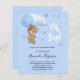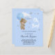 Para um chá de fraldas celebrando um menino. Um fundo azul com estrelas. Um ursinho de pelúcia segurando um balão azul claro. Personalize e adicione o nome da mãe a ser e os detalhes da festa. O nome e o texto: Oh Boy! são escritos com um estilo escrito à mão