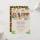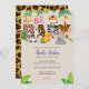 Vá selvagem para este convite animal-temático do chá de fraldas da selva. Um esquema de cores dos rosa e do roxo com os animais adoráveis da selva do bebê com arco e flores, é perfeito para qualquer um esperando um bebé.