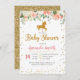 Convite do chá de fraldas do cavalo do carrossel com o pêssego bonito floral e os confetes do ouro.