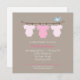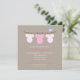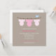 O bebê bonito veste a suspensão em um clothesline neste convite chique.