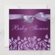 Este convite customizável elegante do chá de fraldas caracteriza rosas e o arco roxos em um profundo - fundo roxo. Personalize-o adicionando seus detalhes na cor e na pia batismal de sua escolha!
