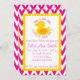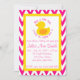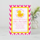 Este convite Ducky de borracha do chá de fraldas da viga cor-de-rosa moderna é perfeito para um bebé na maneira.