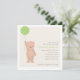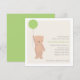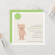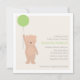 Um convite do chá de fraldas que caracteriza um urso de ursinho que flutua afastado em um balão.