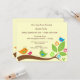 Com um fundo amarelo pálido, a parte dianteira e a parte traseira deste convite do chá de fraldas têm 4 pássaros contemporâneos sentar-se em um ramo de árvore com as 4 flores coloridas. Design ideal para o chá de fraldas, o chá de panela ou o aniversário! Há uma abundância do texto customizável para que você personalize este convite com sua informação do partido.