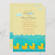 Sacudindo-se em uma piscina de água, quatro poucos patos de borracha flutuam em seguido. Um design adorável apenas perfeito para um convite do chá de fraldas.