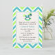 Convite do chá de fraldas do casal à moda feito em uma turquesa moderna, em um branco, e em um teste padrão de ziguezague verde-claro da viga. Os gráficos de uma área de texto branca, com um ponto colorido turquesa gostam de afiar e um cavalo de balanço bonito do verde e da turquesa, no superior termina fora este grande convite de vista. Personalize o texto para serir suas necessidades do evento. Convite que bonito o casal amará.