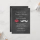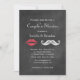 Um bigode e os lábios do divertimento, em um fundo ilustrado do quadro, acentuam o convite do chá deste casal.