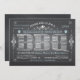 Um divertimento e um convite na moda a uma celebração do CHURRASCO para o casal feliz.  Dado um efeito do quadro, a rotulação tem o olhar popular da escrita no giz em um conselho preto. Com uma mistura ecléctico da pia batismal e do estilo, em branco e em pálido "algo" azul, o olhar é brincalhão e dando boas-vindas - apenas aperfeiçoe para um chá de casamento amigável do CHURRASCO da família.