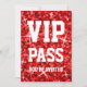 Convite com um design impresso moderno com as estrelas dispersadas sobre do "um fundo estilizado do teste padrão do olhar sequin" nas máscaras do vermelho e do "passagem VIP você é convidado" escrito no branco. Um design customizável para que você personalize com seus próprios texto, imagens e ideias. Note por favor isto é uma imagem digital impressa da arte. O produto não brilha nem não contem o brilho real ou os sequins.