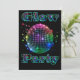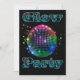 Este convite tem uma grande bola colorida do disco e o partido do fulgor das palavras na parte dianteira e uma bola pequena do disco na parte traseira com texto do convite de festas da amostra. Use o botão da personalização para mudar ou suprimir de todo o texto na parte traseira.