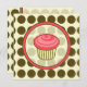 Um convite que caracteriza um cupcake cor-de-rosa esboçado no interior do marrom uma harmonização do quadro cor-de-rosa e marrom.  O fundo é bolinhas sobre o bege.  O lado oposto caracteriza o fundo de harmonização das bolinhas com texto marrom e cor-de-rosa sobre o lado completo.  Personalize com detalhes de seu evento.