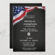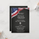 Celebre este Momento Marcante com este Convite de Lousa do Curso de Polícia com Bandeira Americana. Este design apresenta uma bandeira americana, um distintivo de polícia, fundo de lousa e todos os detalhes da festa para o graduado da academia. Deixe a celebração começar enquanto você homenageia este graduado orgulhoso.