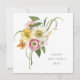 Este cartão único de Dia das Mães em forma de quadrado tem um colorido buquê de aquarela de primavera na frente do cartão com o texto elegante "FELIZ DIA DAS MÃES". As cores incluem tons de amarelo, branco marfim, rosa e folhagens esparsas verdes. A parte de trás do cartão tem um padrão floral de primavera correspondente com flores femininas e repetitivas encantadoras. Todo o texto neste cartão pode ser personalizado com a redação desejada. Mostre à Mamãe o quanto você a ama com um cartão lindo e elegante que expressa seus sentimentos sinceros.