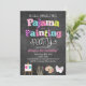 Nosso convite de aniversário original, êxito de vendas, do pijama e do quadro da pintura do estilo é o perfeito convida para todo o partido do tema da pintura e do pijama. Nossas características de design um fundo do quadro, uma mistura de letras de teste padrão do divertimento tais como bolinhas, listras e viga, deslizadores do coelho, uma armação da arte, escovas de pintura e artista pintam a paleta. Aperfeiçoe para uma festa de aniversário do tema da arte do divertimento!