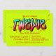 Um convite de grafite neon verde brilhante e desorganizado adequado para um menino de doze 12 anos.