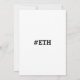 Este convite apresenta o ícone do Ethereum com cores cinza e preto neste tema e estilo inspirados no blockchain / criptomoeda Bitcoin. Impresso em um papel clássico e versátil de 17,5 pt de espessura com acabamento em matte não revestido com textura de casca de ovo feito e impresso nos EUA com "#ETH" impresso no verso.