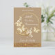Convite de aniversário de casamento de 50 anos com cor lisa e brilho dourado, e desenho de borboleta para destacar o convite.
