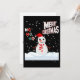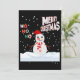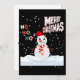 Este convite exibe as palavras "Feliz Natal Ho Ho Ho" em uma fonte de impressão única com letras multicoloridas e Natal O Boneco de Neve usa vermelho e branco com neve caindo ao fundo neste tema e estilo de Natal. Impresso em um papel clássico e versátil de 17,5 pt de espessura com acabamento fosco não revestido e textura de casca de ovo feito e impresso nos EUA com "Feliz Natal" impresso no verso.