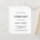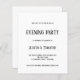 Texto Preto do Orçamento Convite do Partido da Noite Branca. 100% personalizável. Um design tipográfico moderno em um cartão de ponto-e-vírgula de preço de 4,5 x 5,6 pol (semelhante à espessura de um cartão postal) menor para convidar seus convidados noturnos para o seu casamento. As cores podem ser alteradas se necessário por meio de personalização adicional.